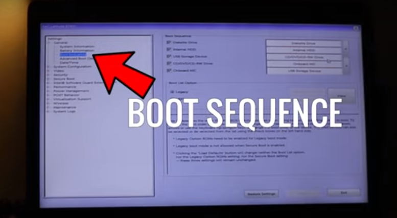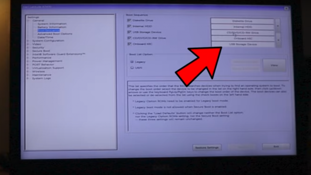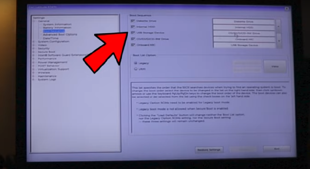 - As we press F2 during the boot-up process, the laptop seamlessly transitions into BIOS configuration mode. It’s important to note that BIOS interfaces can differ significantly between laptop brands and versions, so what you see on your screen might look different. Our next target within the BIOS configuration is the boot sequence, or boot order. This area lists the devices the computer is capable of booting from. By default, most devices are usually checked, so we want to refine this list. This is what you are going to do if your device supports “Legacy”. For UEFI, you can go to the next step.
